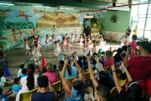 Com o tema “Aldeia do Brincar Waapa Para Inspirar”, a creche municipal Eliana de Freitas, da Prefeitura de Manaus, localizada no bairro Riacho Doce III, zona Norte, realizou na tarde desta sexta-feira, 17/11, o espetáculo de balé tradicional da unidade escolar. A atividade contou com um corpo de dança mirim de 25 crianças de 1 a 3 anos, do maternal 1 ao 3, além de mais de 50 pais ou responsáveis.
